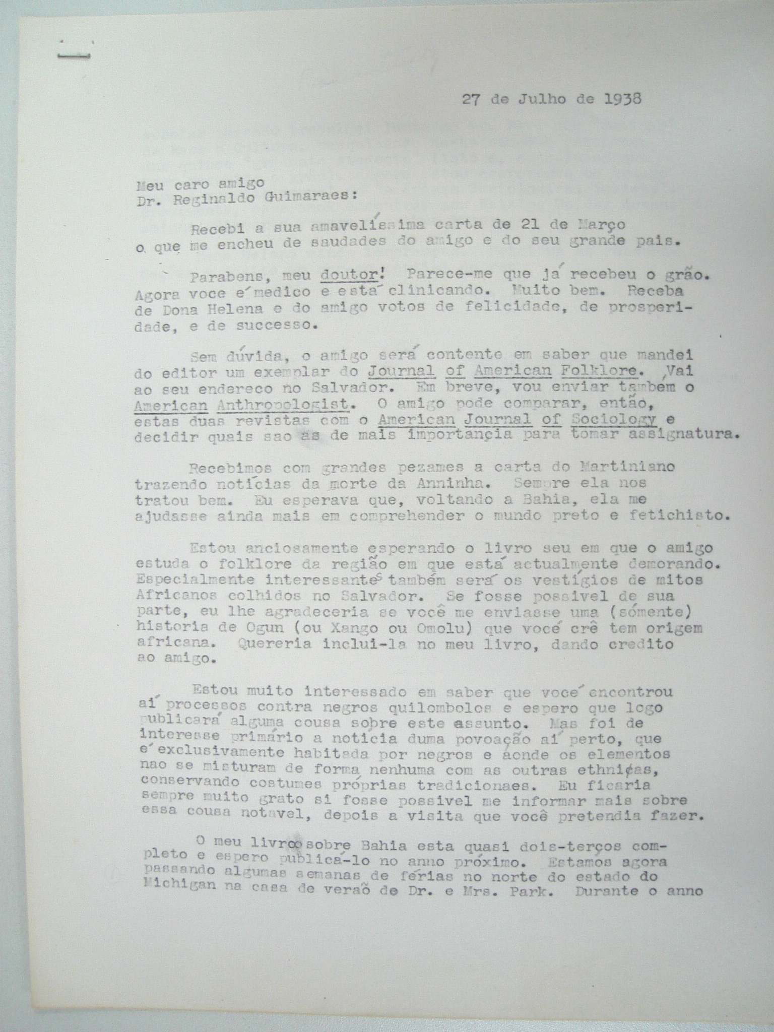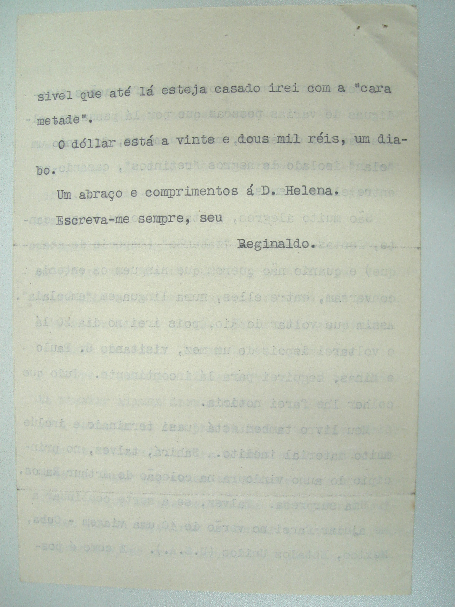 Correspodência para Donald Pierson, remetente Reginaldo Guimarães JPG / Tamanho: 824KB | Extensão: 2048x1536