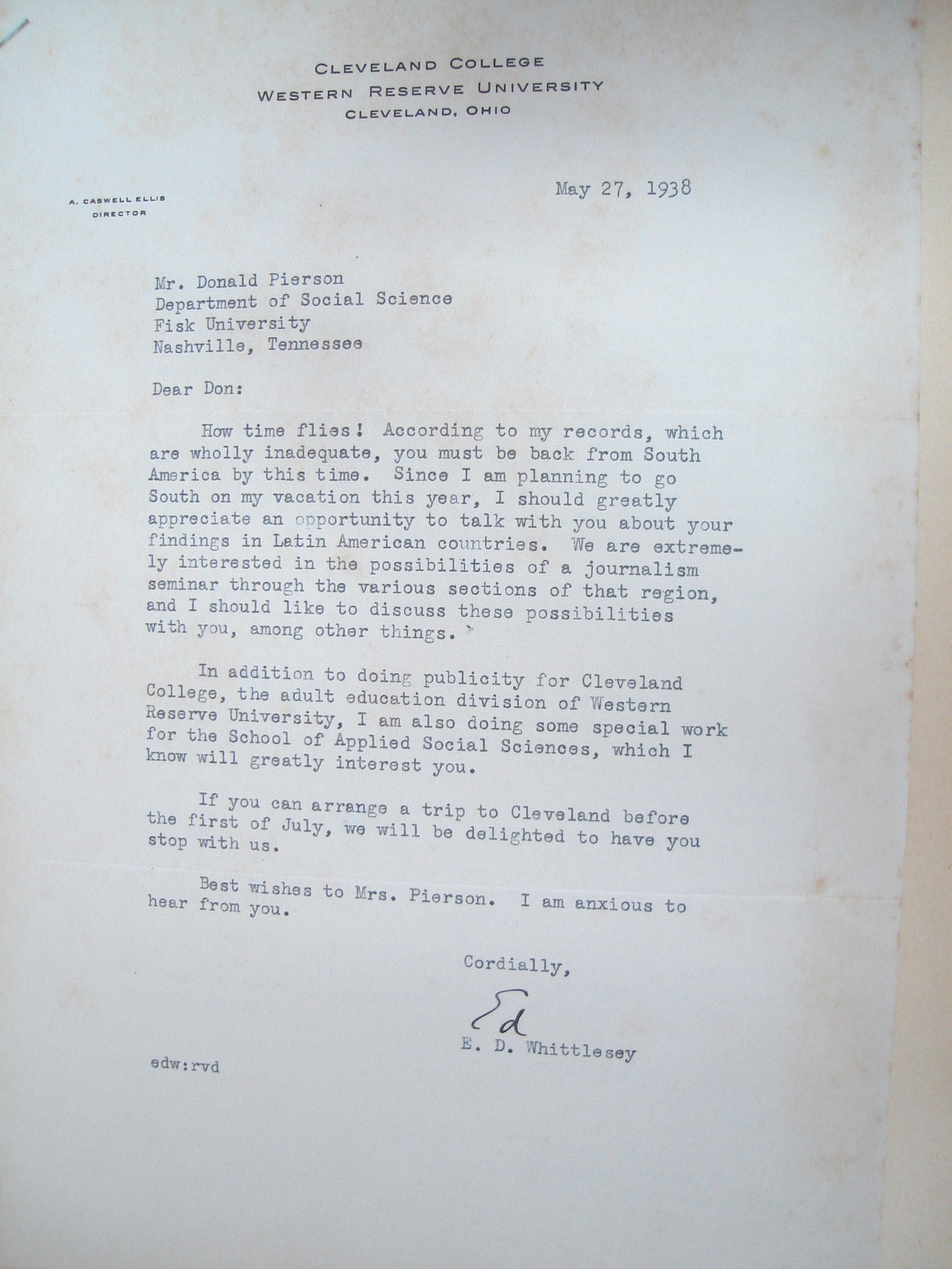 Correspodência para Donald Pierson, remetente E.D Wittlesey JPG / Tamanho: 788KB | Extensão: 1536X2048